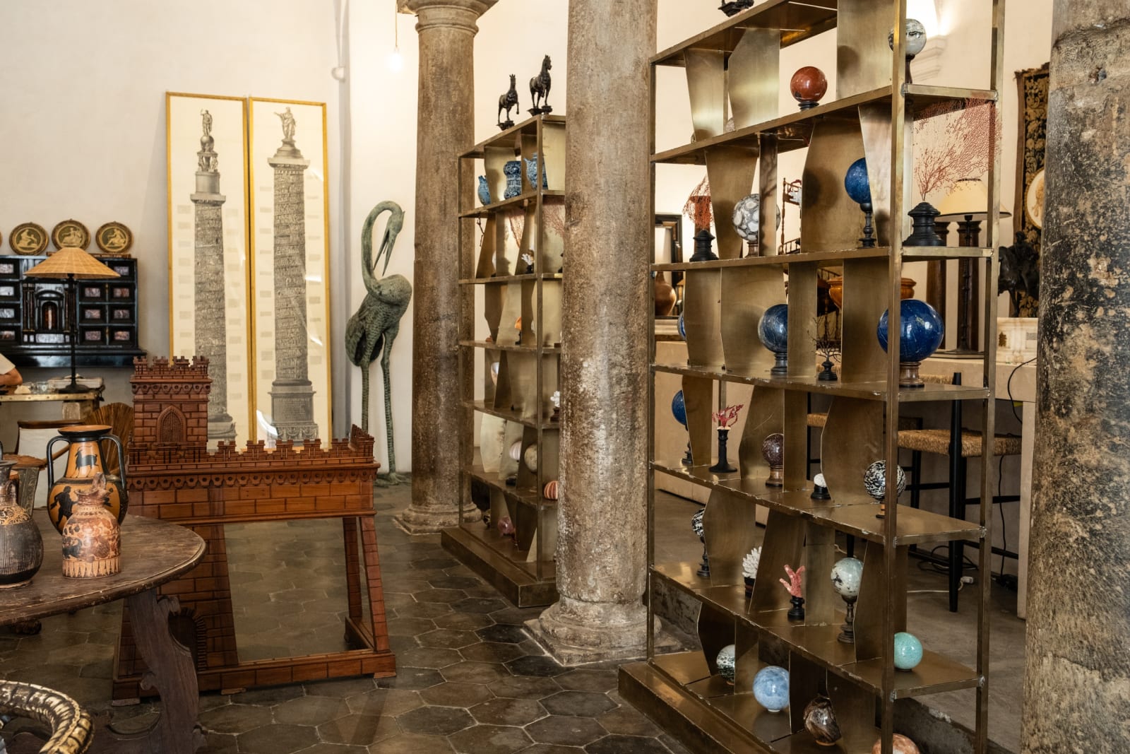 Frutto della collaborazione tra The Flair Interiros e Antiques Par Force, questo spazio - a due passi da Palazzo Farnese, nel seicentesco Palazzo Planca Incoronati - celebra la stroardinarietà del passato e l'innovazione del presente, intrecciando secoli diversi in un unico gusto. Dai marmi dell'antica Roma ai mobili in stile grotto, dalle panche Luigi XIV ai dipinti dei grandi maestri del XX secolo : un esempio esatto di modernità che si esprime attraverso i caratteri della storia